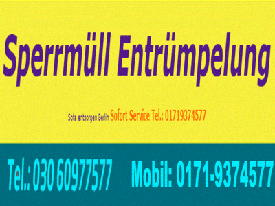 Wenn der Kunde uns telefonisch Entrümpler Sperrmüll Wohnungsentrümpelungen Berlin kontaktiert, können telefonisch alle Details zur Wohnungsentrümpelung private von Sperrmüll in besprechen. Es wird preiswert sein.